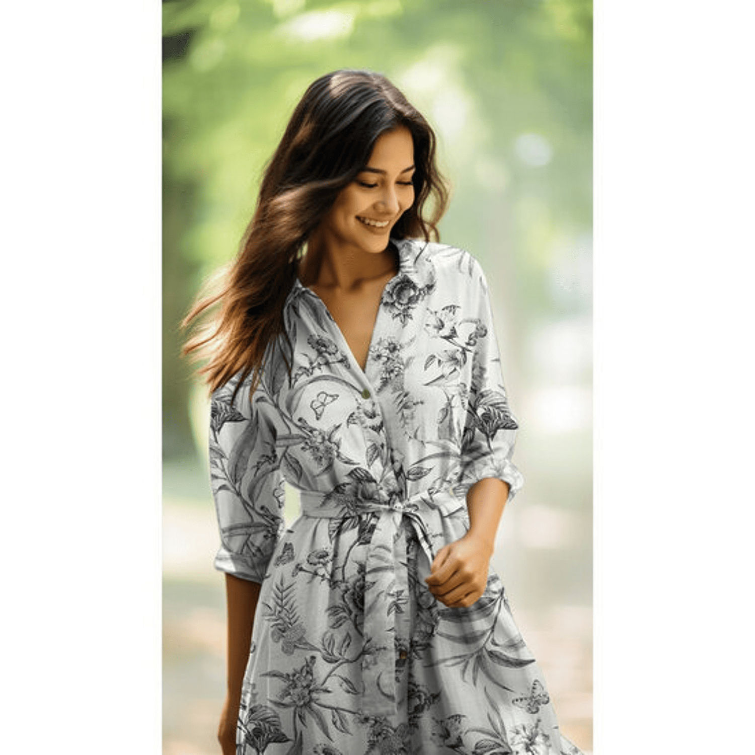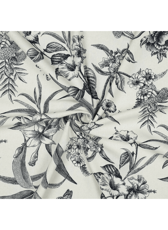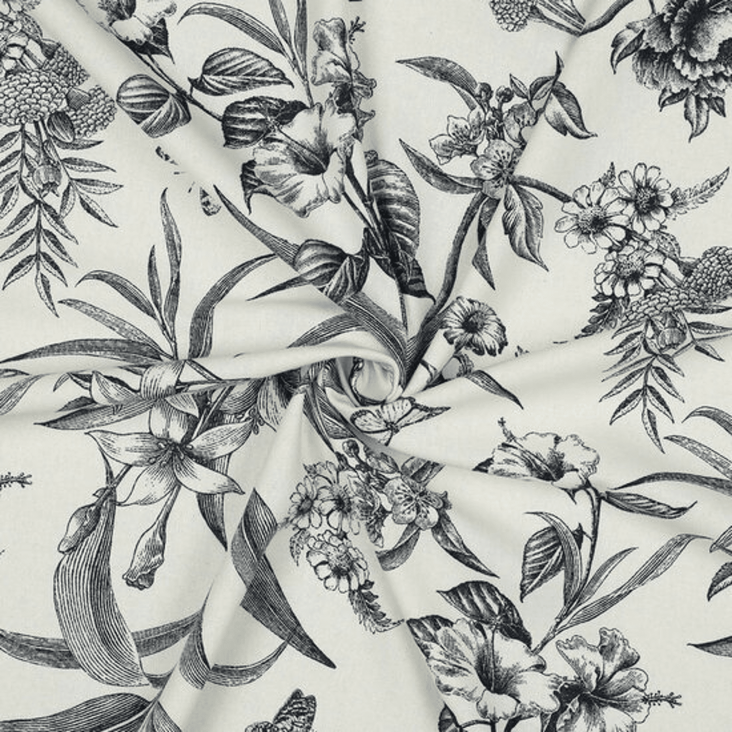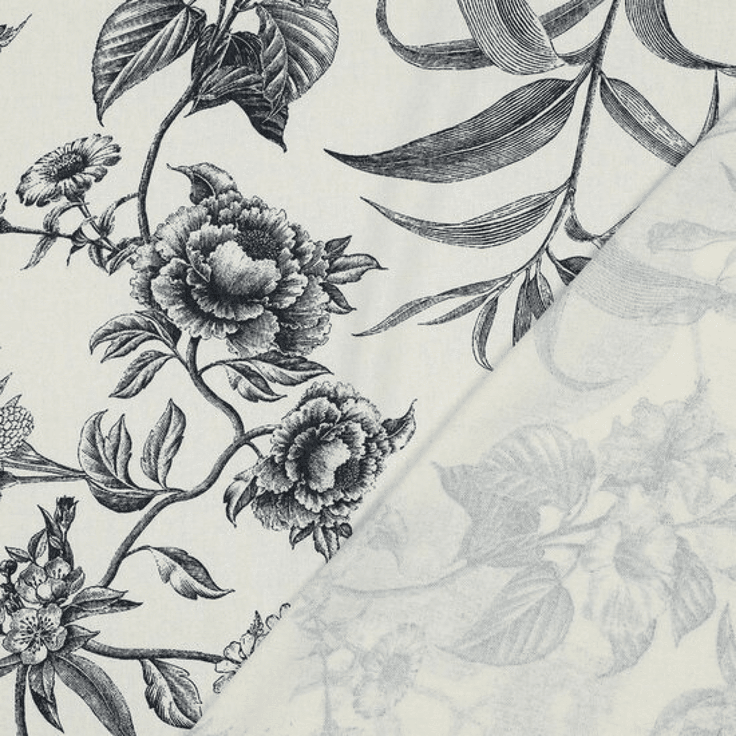 - Product: Viscose Linnen - Navy Flowers - Ecru