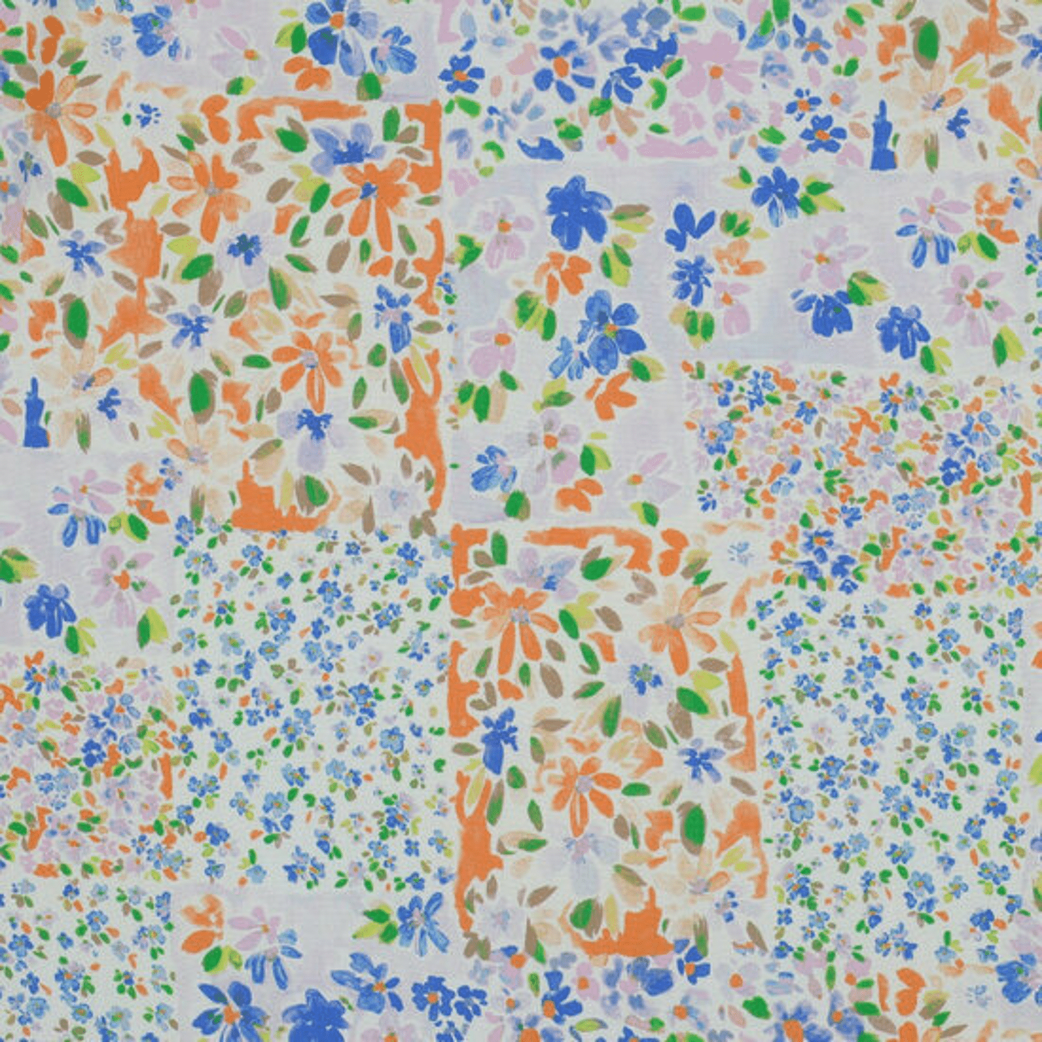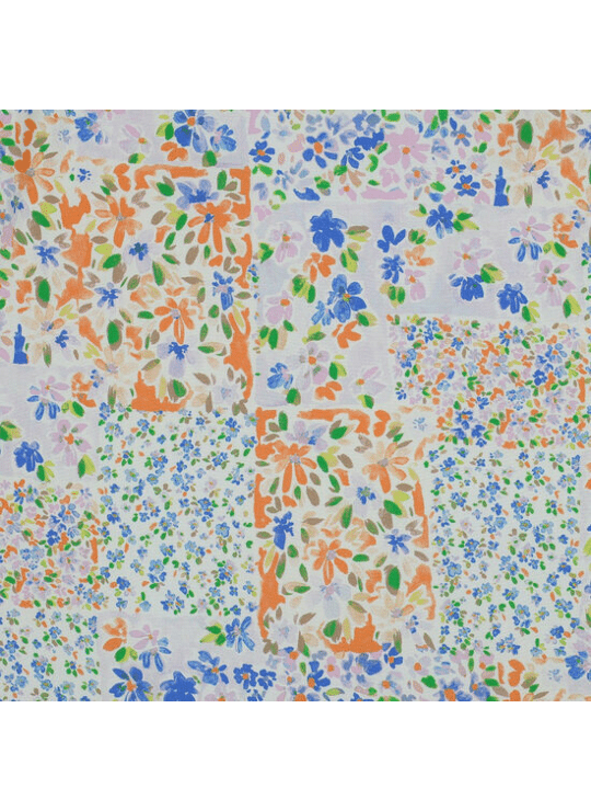 - Product: Viscose - Patchwork Flowers - Indigo-Oranje