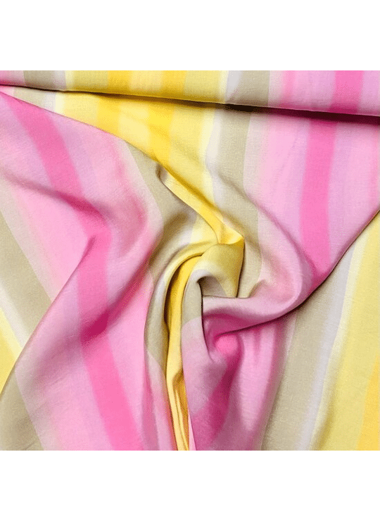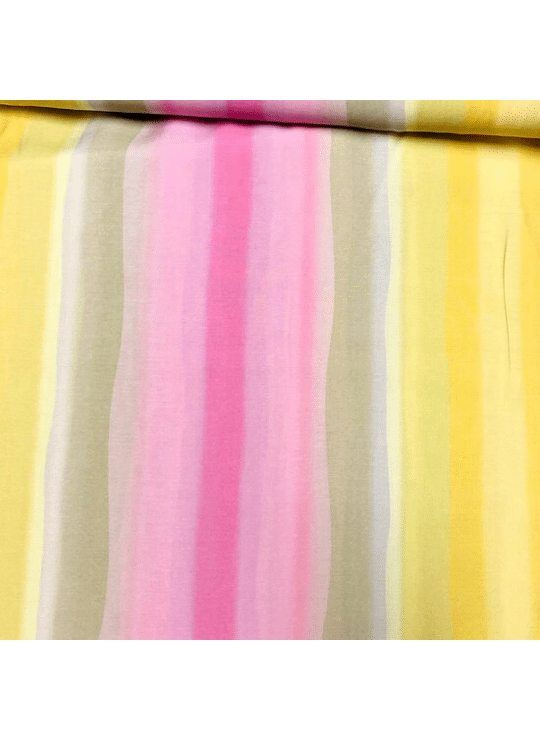 - Product: Viscose - Strepen - Roze-Geel-Groen