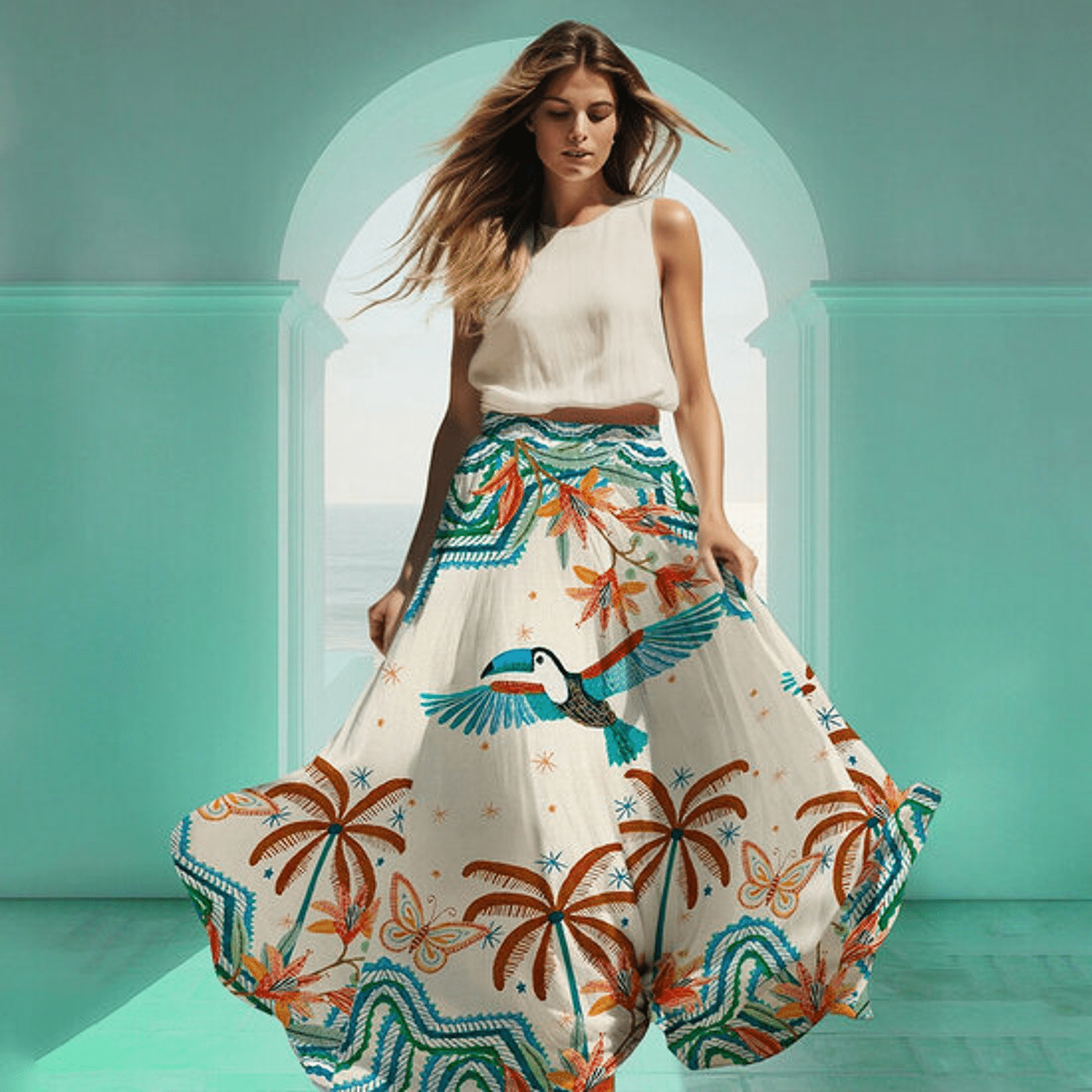 - Product: Viscose Twill - Tucan Birds - Ecru