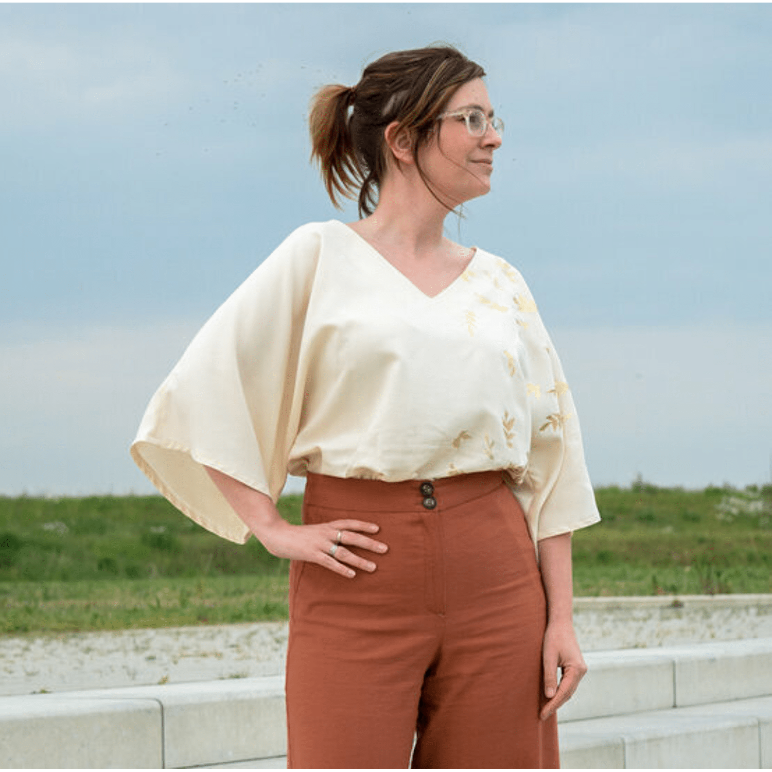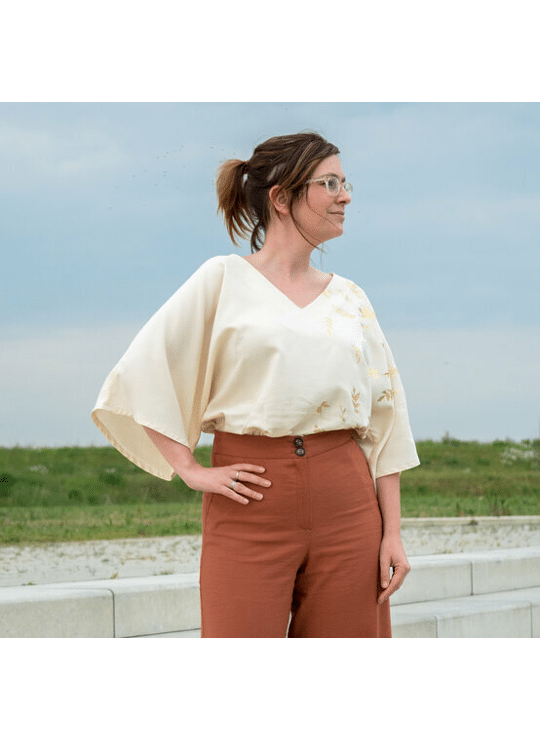 Vita is een vlot patroon voor dames en tieners waarmee je luchtige, comfortabele en stijlvolle blouses naait in maten 32 tot en met 48 (+/- borstomtrek 120cm).